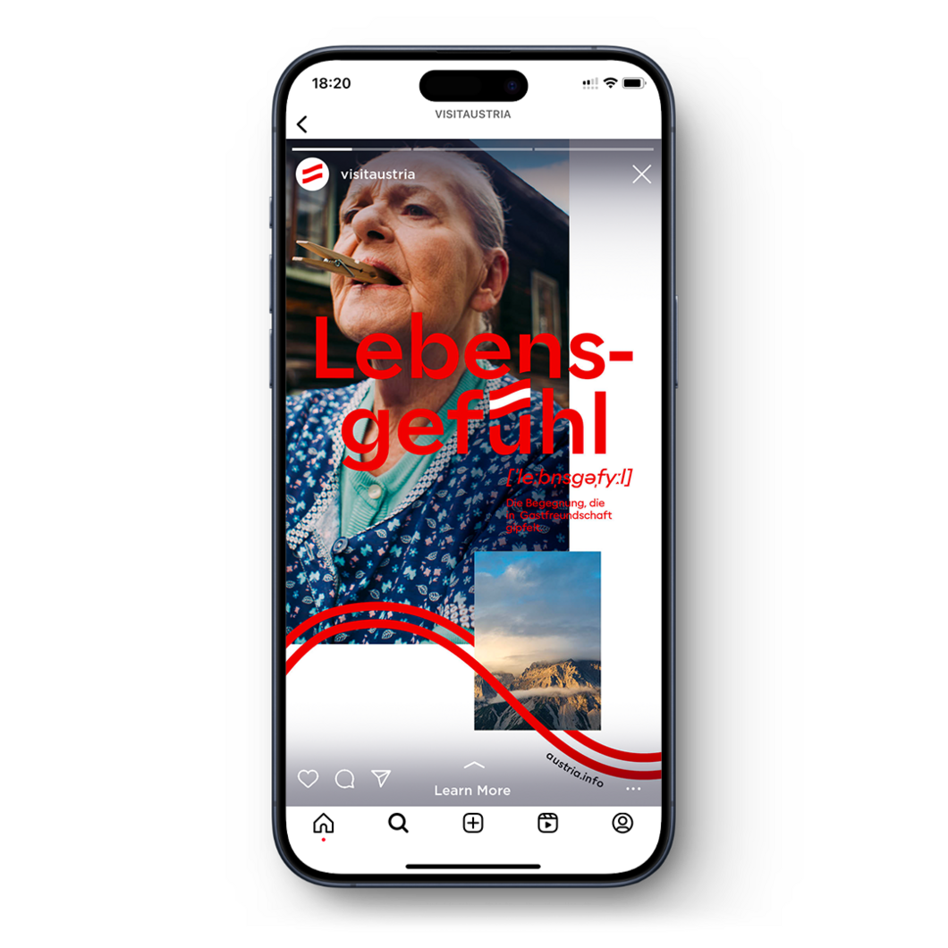 Der Name „Österreich“ wird gestalterisch erweitert, indem die Flagge direkt integriert wird. Die österreichische Fahne wird in jeder Sprachadaption gehisst und bekommt dadurch ein visuelles Alleinstellungsmerkmal.